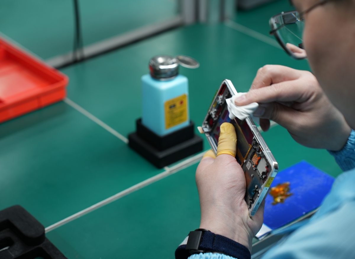 Tuotantolinja OnePlus 13:n valmistamiseksi oli kaikin puolin siisti ja hyvin järjestäytynyt. Puhelimen kokoonpano koostuu useista tarkkuutta vaativista vaiheista, minkä lisäksi puhelimia myös testataan laadun varmistamiseksi jatkuvasti eri kokoonpanovaiheiden välissä.