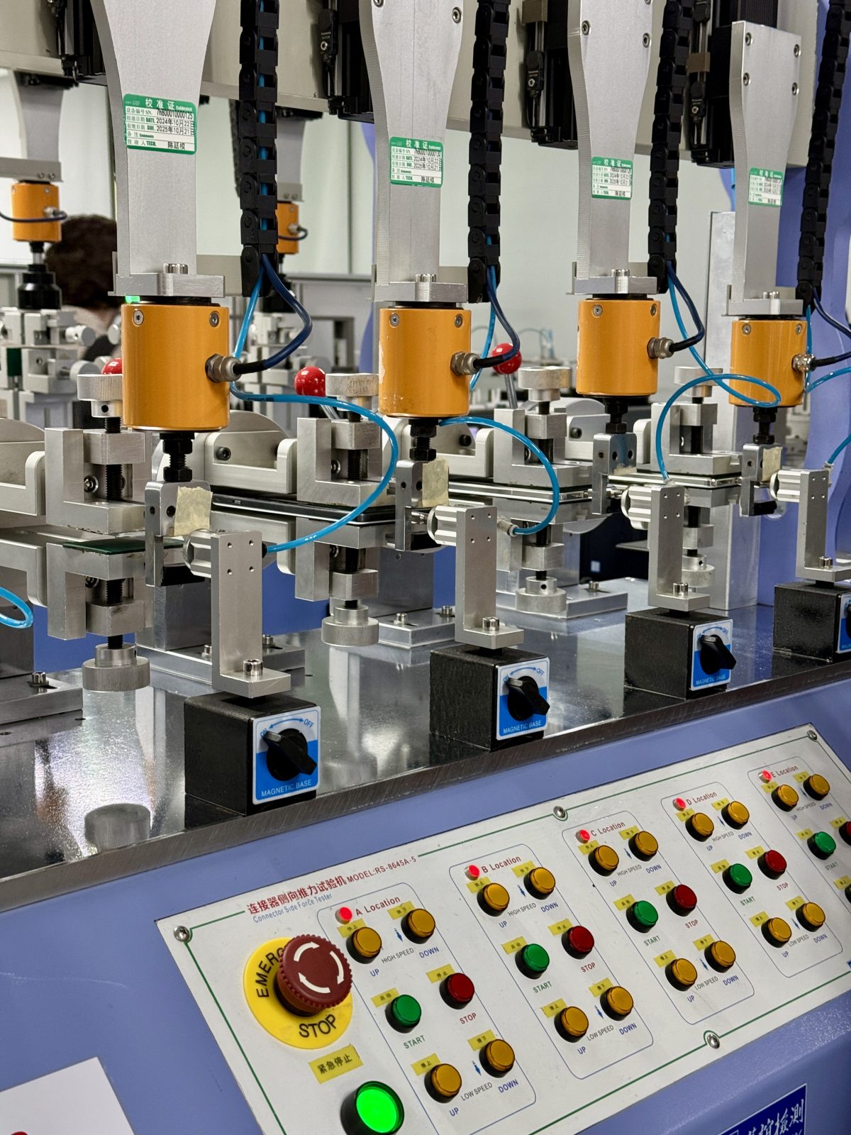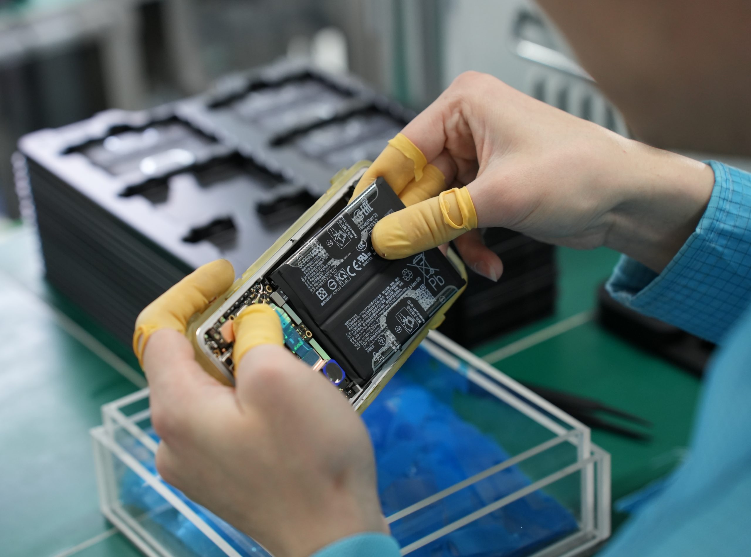 Kestävyystestauslaboratorion kiertämisen jälkeen oli aika tutustua vielä tehtaaseen ja tuotantolinjan toimintaan. Käynnissä oli OnePlus 13 -huippupuhelimen tuotanto.
