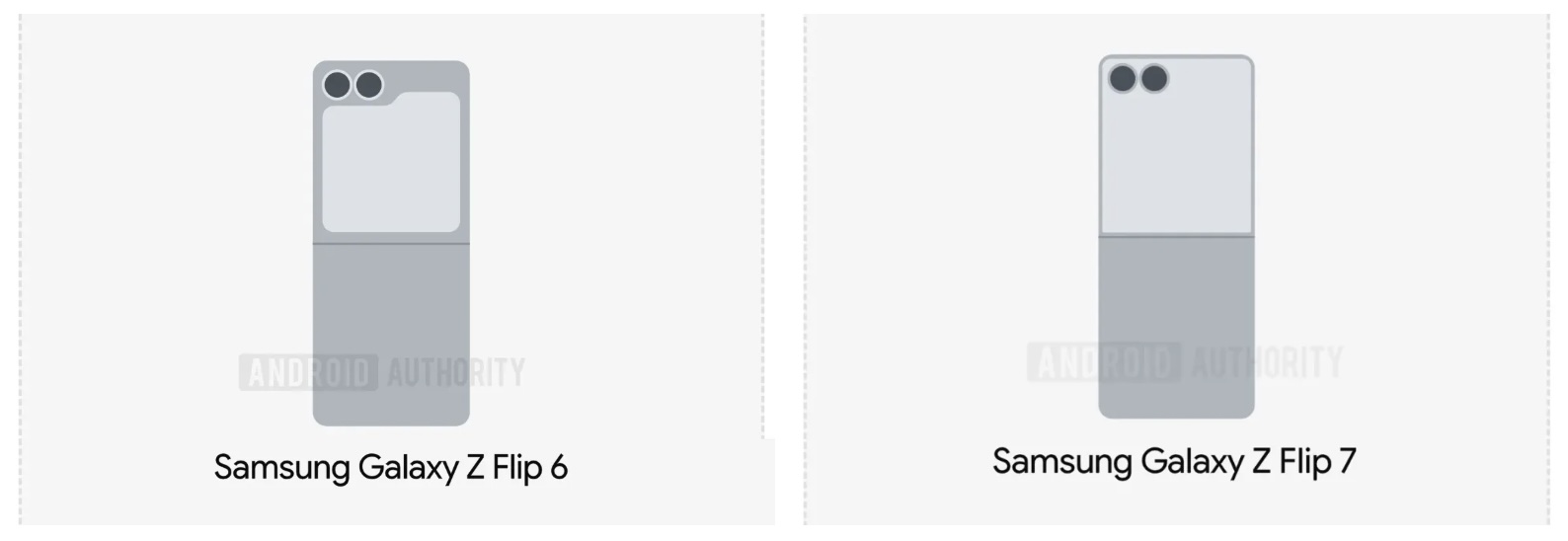 Samsung Galaxy Z Flip6 vs. Galaxy Z Flip7. Android Authority -sivusto löysi uutta designia esittelevän kuvan Samsungin ohjelmistosta.