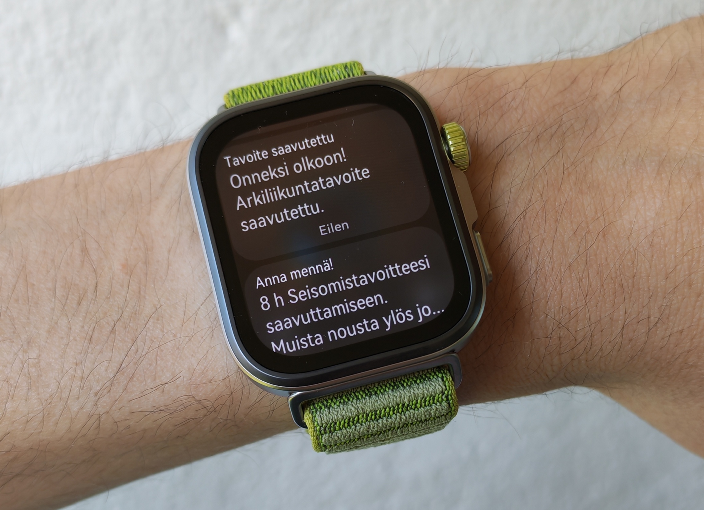 Näytön luettavuus on hyvä, olipa kyse sitten valikkojen selailusta, älypuhelimesta saapuvien ilmoitusten tarkastelusta tai tallennettujen harjoitusten läpikäymisestä. Suuri ja laadukas näyttö on ehdottomasti Huawei Watch Fit 4 Pron vahvuuksia.