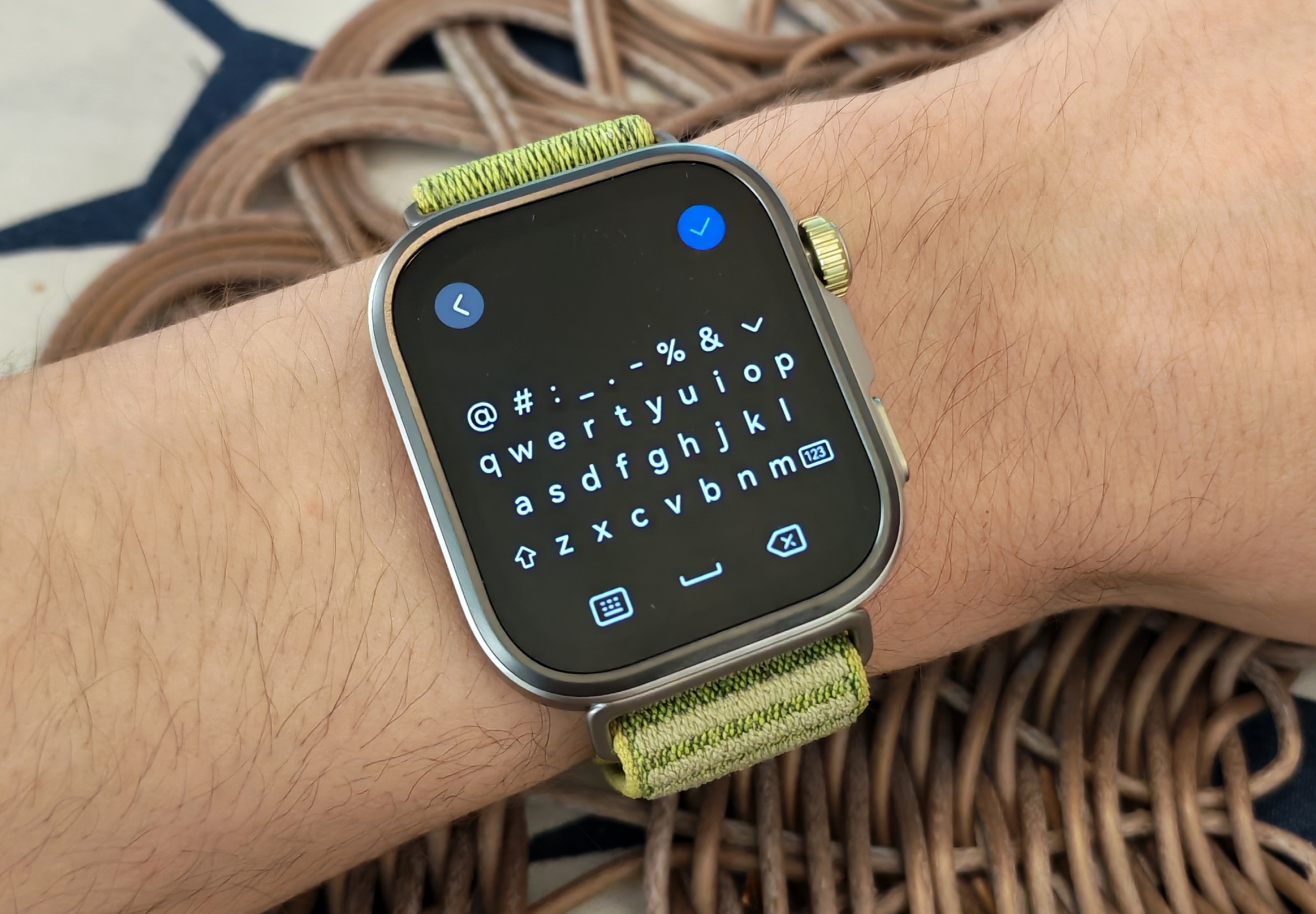 Pika-asetukset saa auki alaspäin pyyhkäisemällä, ilmoitukset taas ylöspäin suuntautuvalla sipaisulla. Watch Fit -malliston uutuutena Fit 4 Pro mahdollistaa myös vastausten kirjoittelun pienikokoisella näppäimistöllä, jolla näytöllä on yllättävän hyvin tilaa.