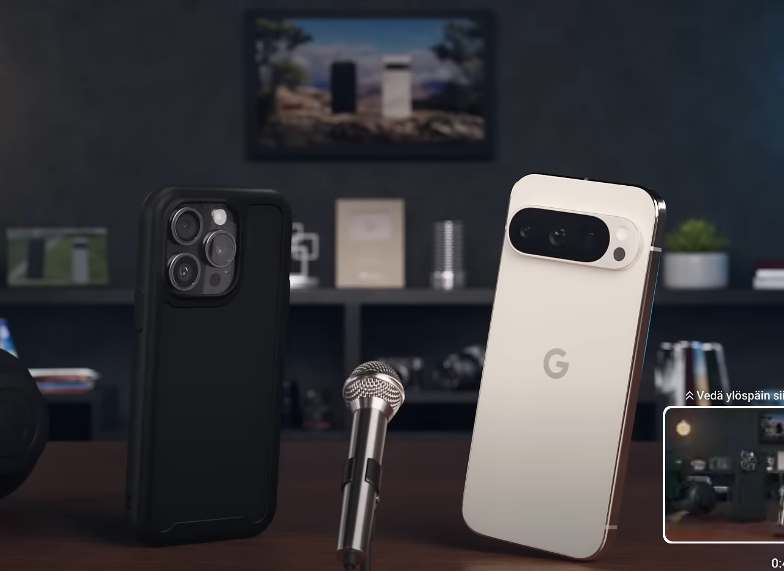 Podcastia mukailevassa mainoksessa Pixel 9 Pro keskustelee uudistuksista ystävänsä iPhone 16 Pron kanssa. Aiheena ovat Applen vastikään esittelemät uudistukset.
