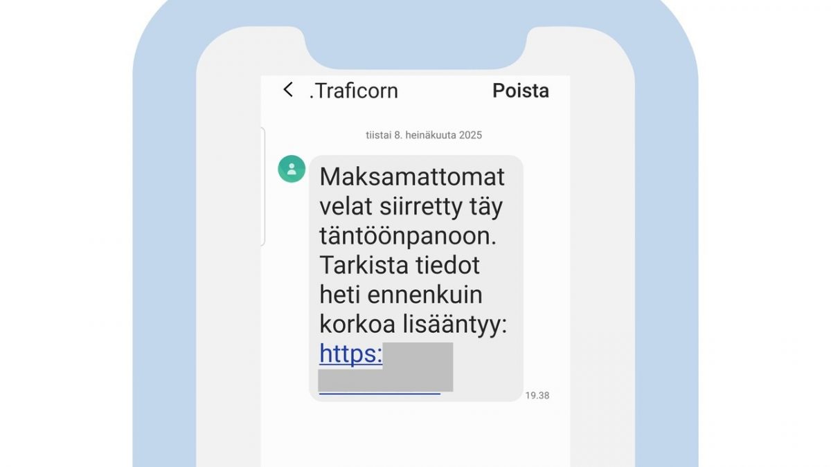 Lisäksi Traficomin nimissä on levitettyä kalasteluviestiä, jossa väitetään viestin vastaanottajalla olevan keskeneräinen maksu Traficomille. Viesti sisältää linkin, joka johtaa pankkitunnuksia kalastelevalle sivustolle.