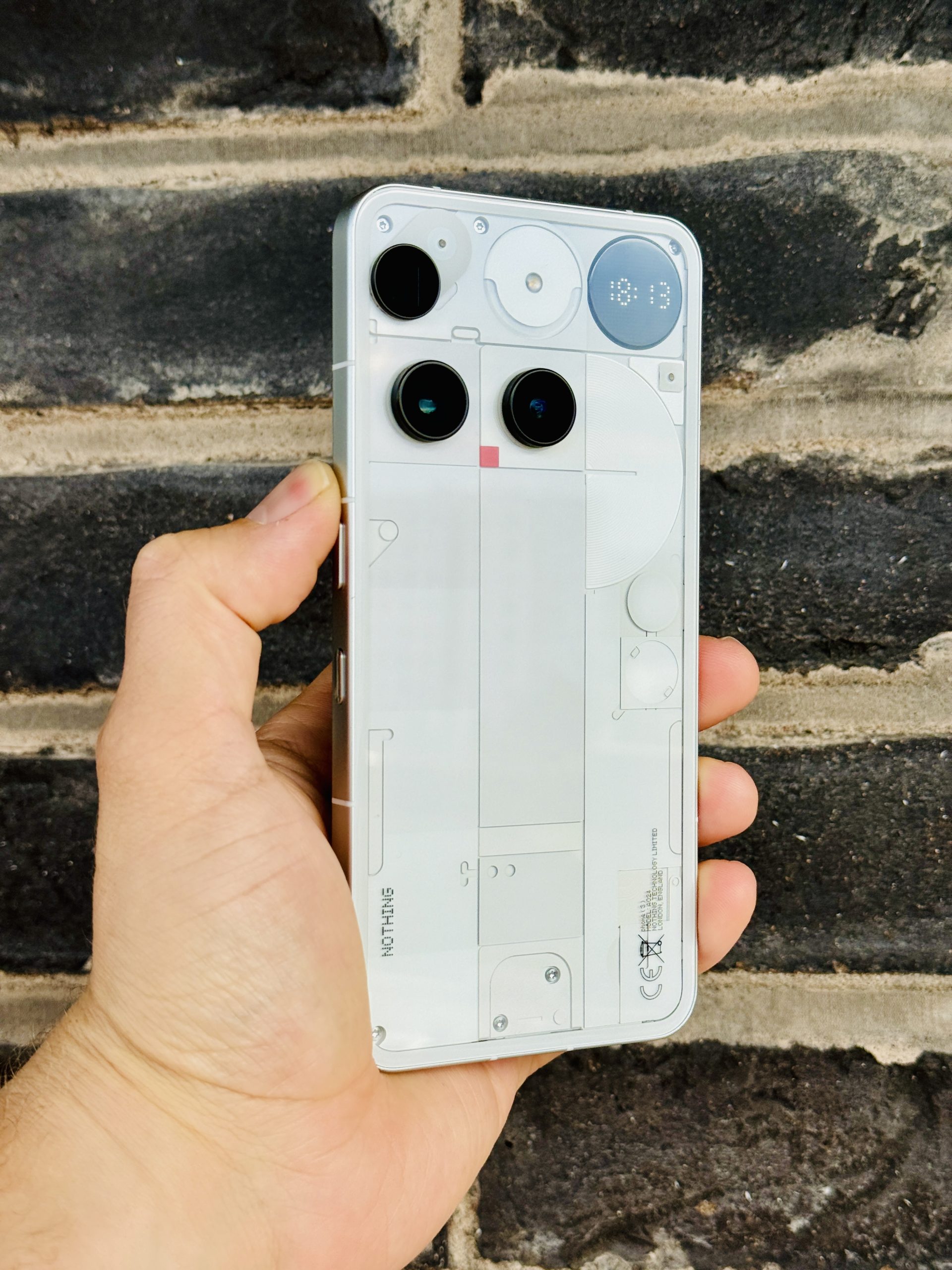 Nothingin puhelimista Phone (3):n ulkonäkö lienee jakanut eniten mielipiteitä, sillä monille kolmen takakameran hajanainen sijoittelu on ollut liikaa. Omaankin silmään Phone (3) näytti aluksi erikoiselta ja oudolta – eikä kovin kauniilta – mutta vähitellen, kun designiin on alkanut tottua, on se alkanut näyttää sopivammalta omaan silmään.