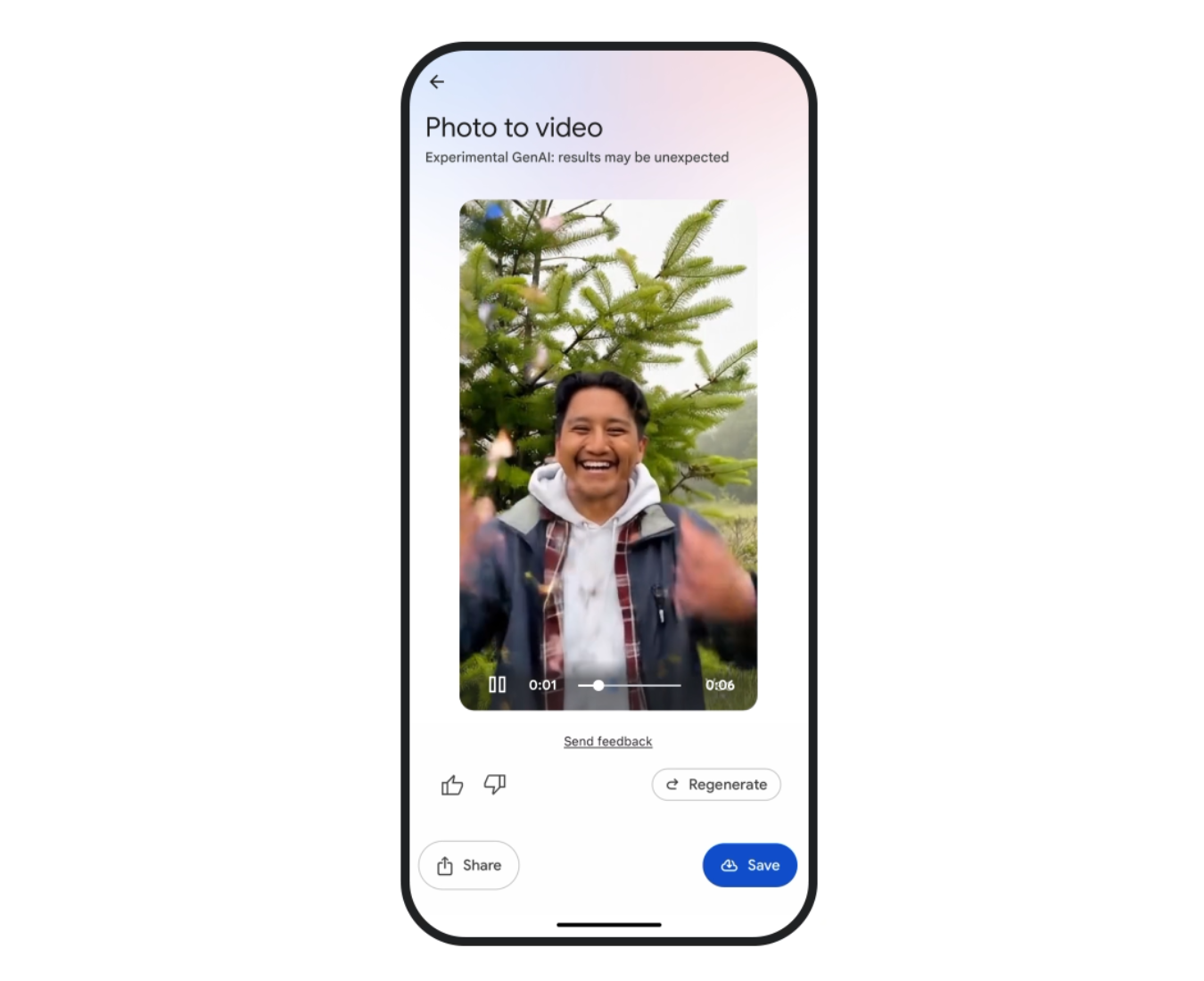 Tekoälyn alati kasvava rooli näkyy myös Google Kuvissa, johon on jälleen esitelty kolme generatiivista eli tuottava tekoälyä hyödyntävää uudistusta. Kuvasta videoksi lienee niistä merkittävin luodessaan lyhyitä, kuuden sekunnin mittaisia videopätkiä käyttäjän valitsemista kuvista.