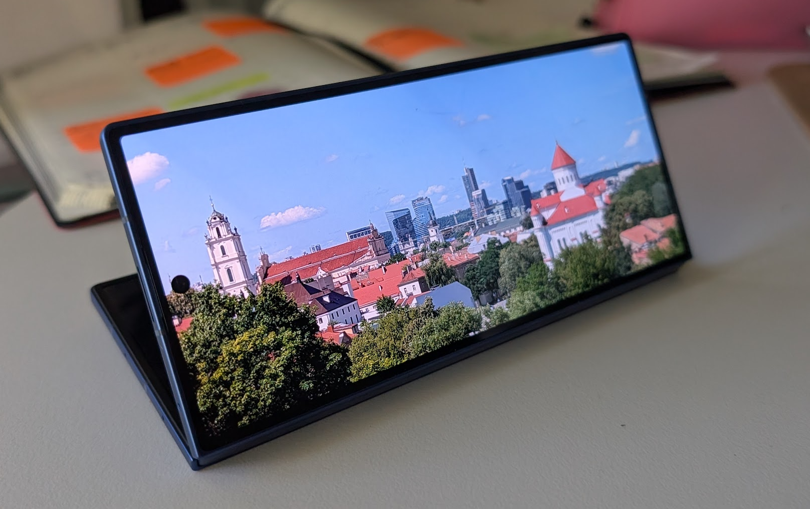 Sarjojen katselu on miellyttävää kansinäytöllä, kun seisontatukikin on taittuvan rakenteen ansiosta mukana.