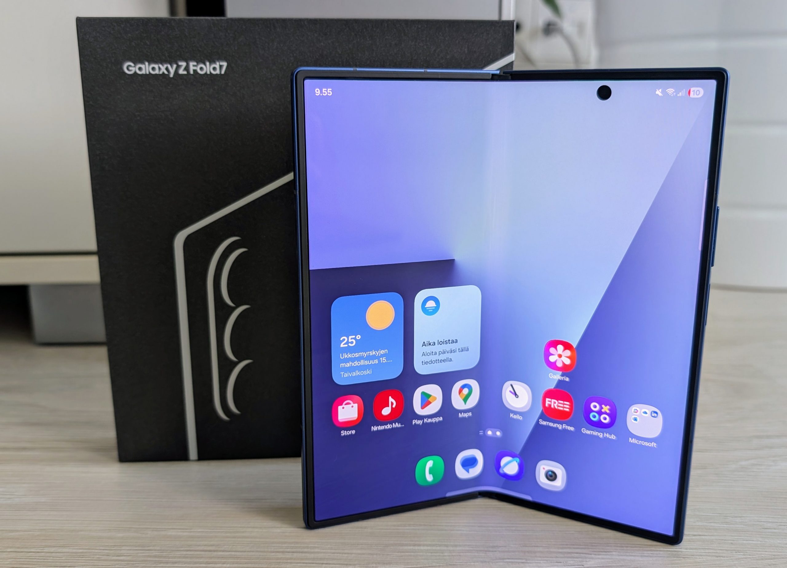 Samsung Galaxy Z Fold7 on taittuvanäyttöinen sellainen älypuhelin, jota taittuvanäyttöisten pioneerilta Samsungilta on odotettu jo vuosia. Malliston alkutaipaleella kummastuttaneet turhan kapeaksi todettu kansinäyttö, ei aivan kiinni asti tarttuva sarana sekä paksun kömpelö rakenne ovat nyt saaneet väistyä, ja Galaxy Z Fold7 on ensimmäinen todella viimeistellyn oloinen mallistonsa edustaja.