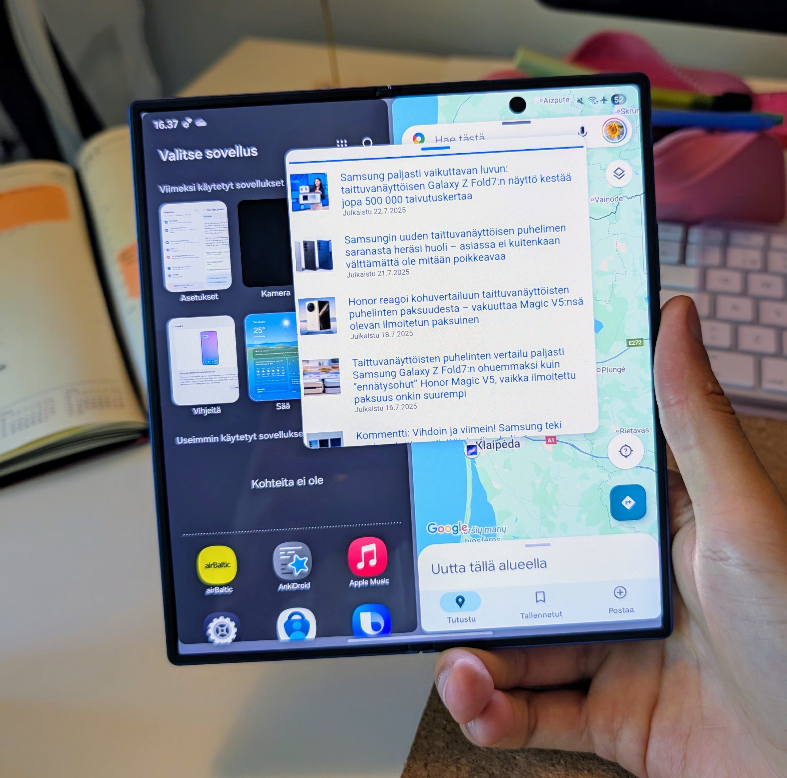 Kilpailu taittuvanäyttöisten älypuhelinten markkinoilla on hiljalleen kiristynyt myös Suomessa, vaikka perinteisten älypuhelinten myyntimäärät ovatkin yhä huomattavasti korkeampia. Samsung Galaxy Z Fold7 vaikuttaa paperilla päivittyneen juuri toivotuilla tavoilla ja olevan valmis kohtaamaan haastajansa.