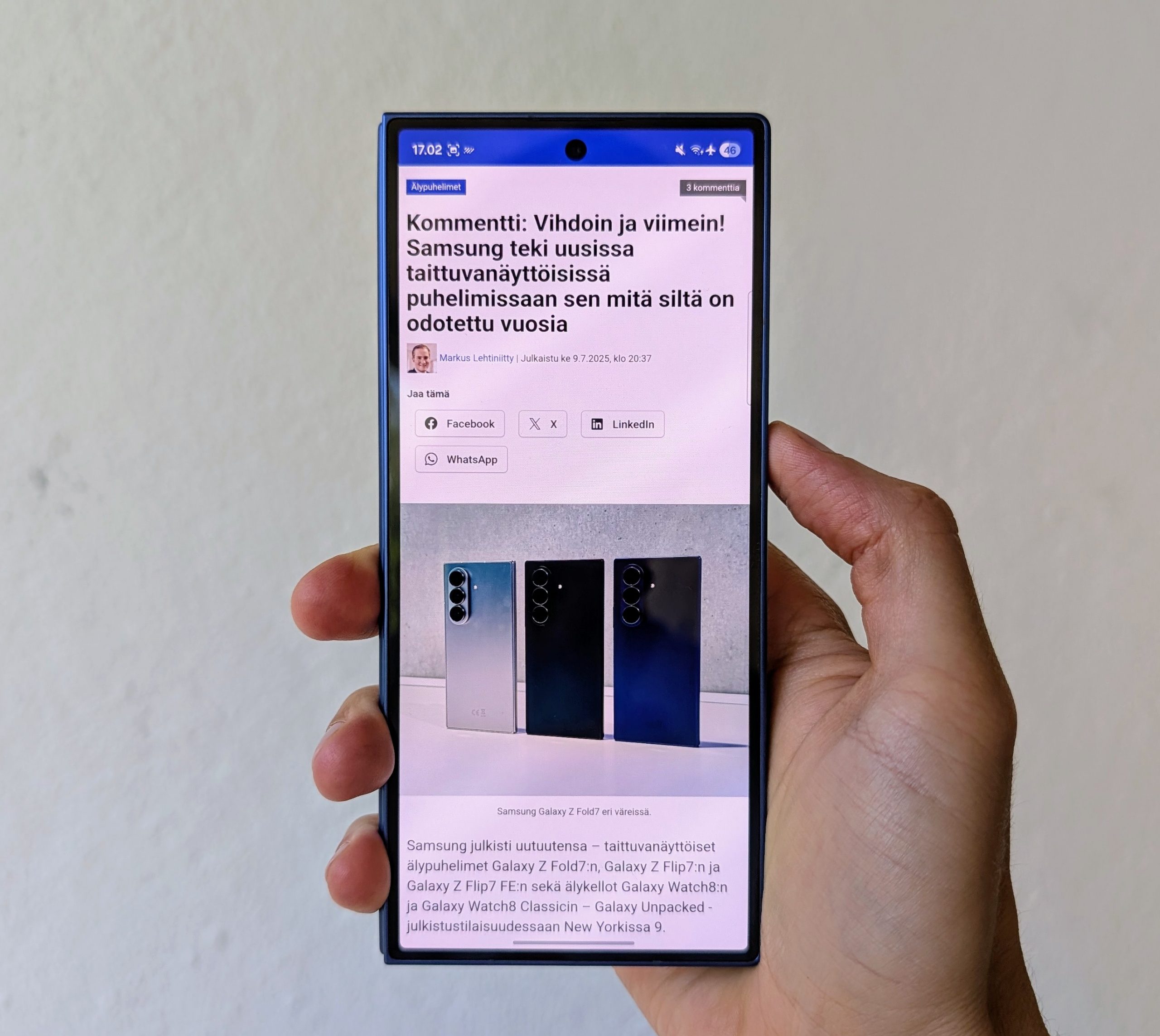 Kirjan tavoin avautuvaa, taittuvanäyttöistä huippupuhelinta etsiville Samsung Galaxy Z Fold7 on jotain sellaista, jota saatiin odottaa pitkään, mutta joka laittoi lopulta lähes kaiken kerralla kuntoon.