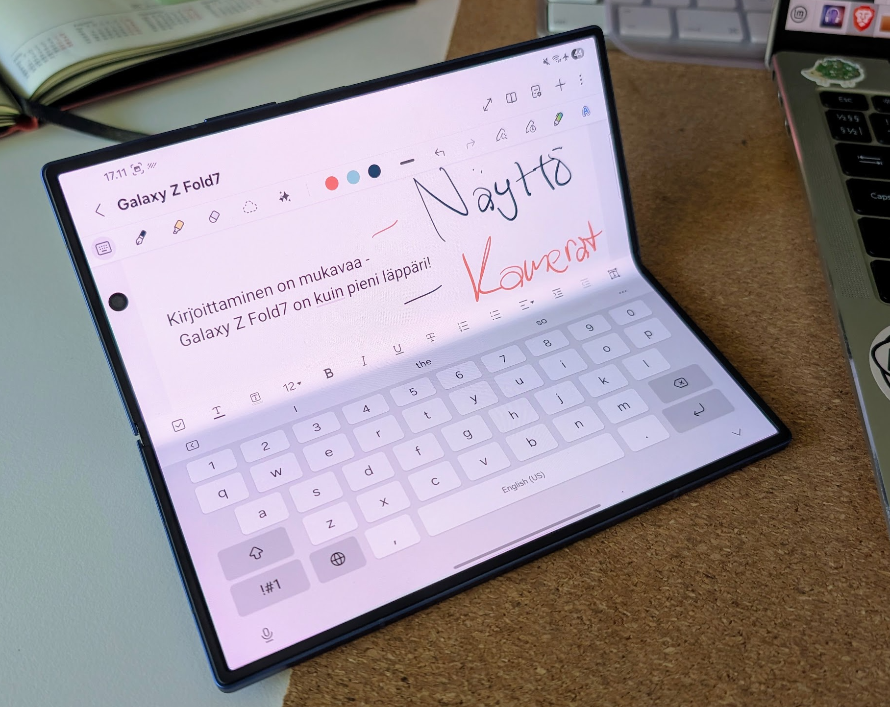 Valitettavasti Samsung Galaxy Z Fold7 ei enää tue S Pen -kosketuskynää toisin kuin edeltäjänsä. Entistä parempi päänäyttö tekisi puhelimesta vielä aiempaakin paremman vaihtoehdon myös luovaan työhön, mutta S Pen -tuen karsimisen myötä piirtely ja luonnostelu ei enää onnistu.