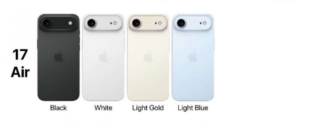 iPhone 17:n osalta värivalikoimassa ei ole mitään kovin yllättävää. Uuden ohuen iPhone 17 -mallin, joka huhuissa tunnetaan nimellä iPhone 17 Air, osalta luvassa olisi paljastusten pitäessä paikkansa neljä erilaista väriä. Näihin lukeutunee mustan ja hopean ohella vaaleansininen (siniharmaalla kamerarenkaalla) ja vaalea kulta.