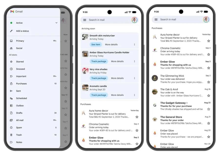 Gmail on saamassa oma näkymän ostoksille. Uuteen näkymään lisätään muun muassa verkkokauppojen tilaukset.
