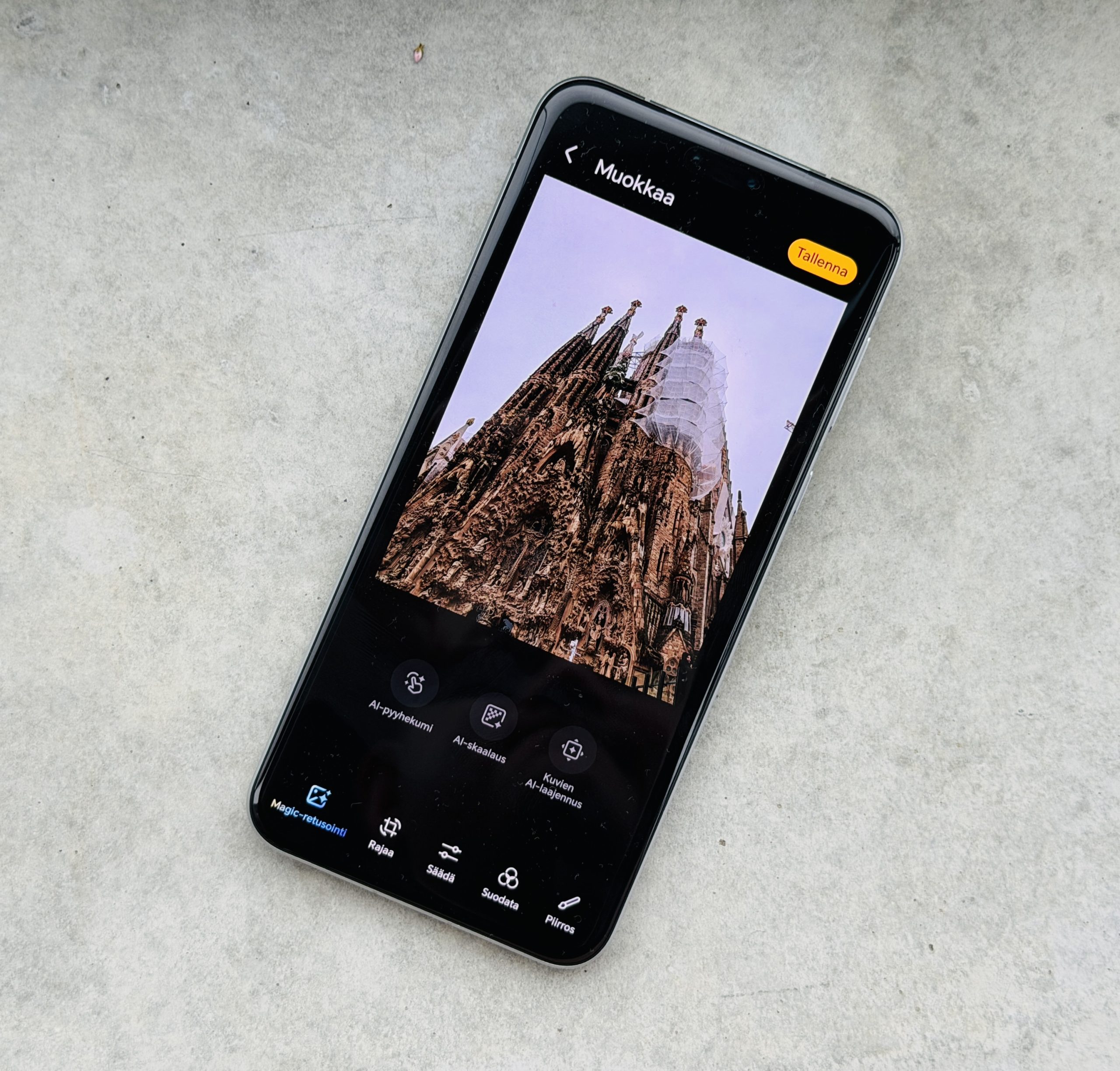 AI-pyyhekumi poistaa kohteesta halutut asiat luonnollisella tavalla, joka olisi vielä jonkin aikaa sitten vaatinut korkean tason kuvanmuokkausominaisuutta mutta onnistuu nyt parilla napautuksella.