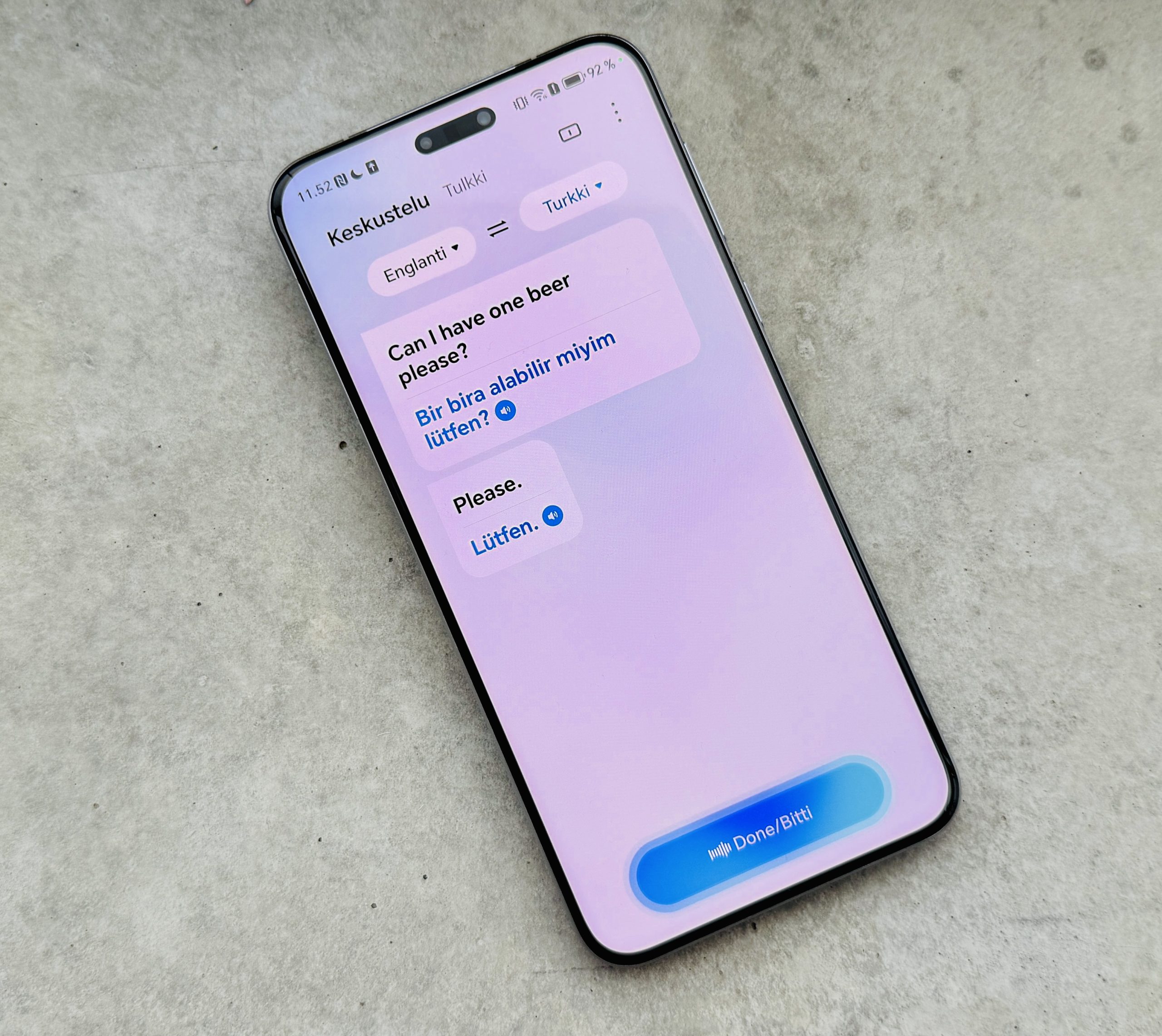 Kätevä toinen puheeseen liittyvä toiminto on AI-tekstitykset, jolla voi muuntaa puheen esimerkiksi laitteessa katsottavista videoista tai kuunneltavasta esityksestä tekstiksi. Haluttaessa samalla voi myös kääntää kielen toiseksi yllä mainittujen kielten välillä.
