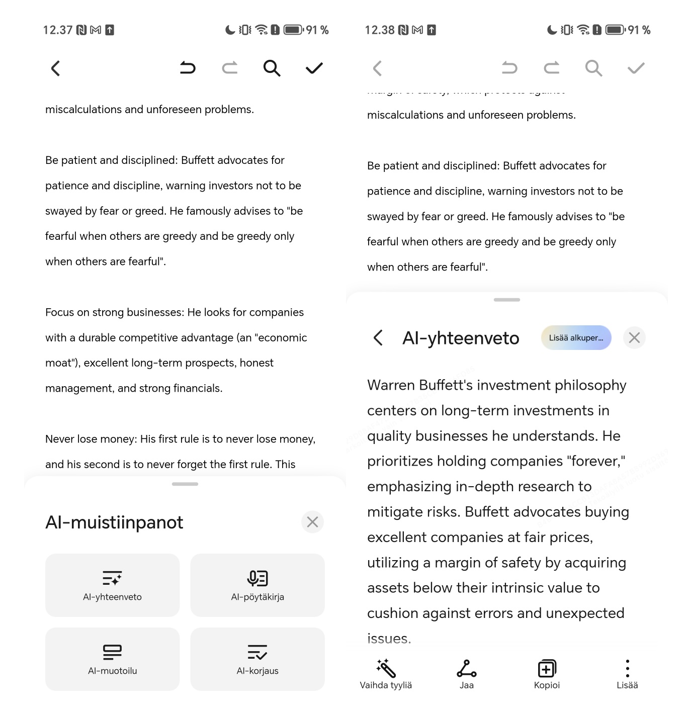 Tekoäly on tietenkin apuna myös tekstisisältöjen muokkaamisessa.