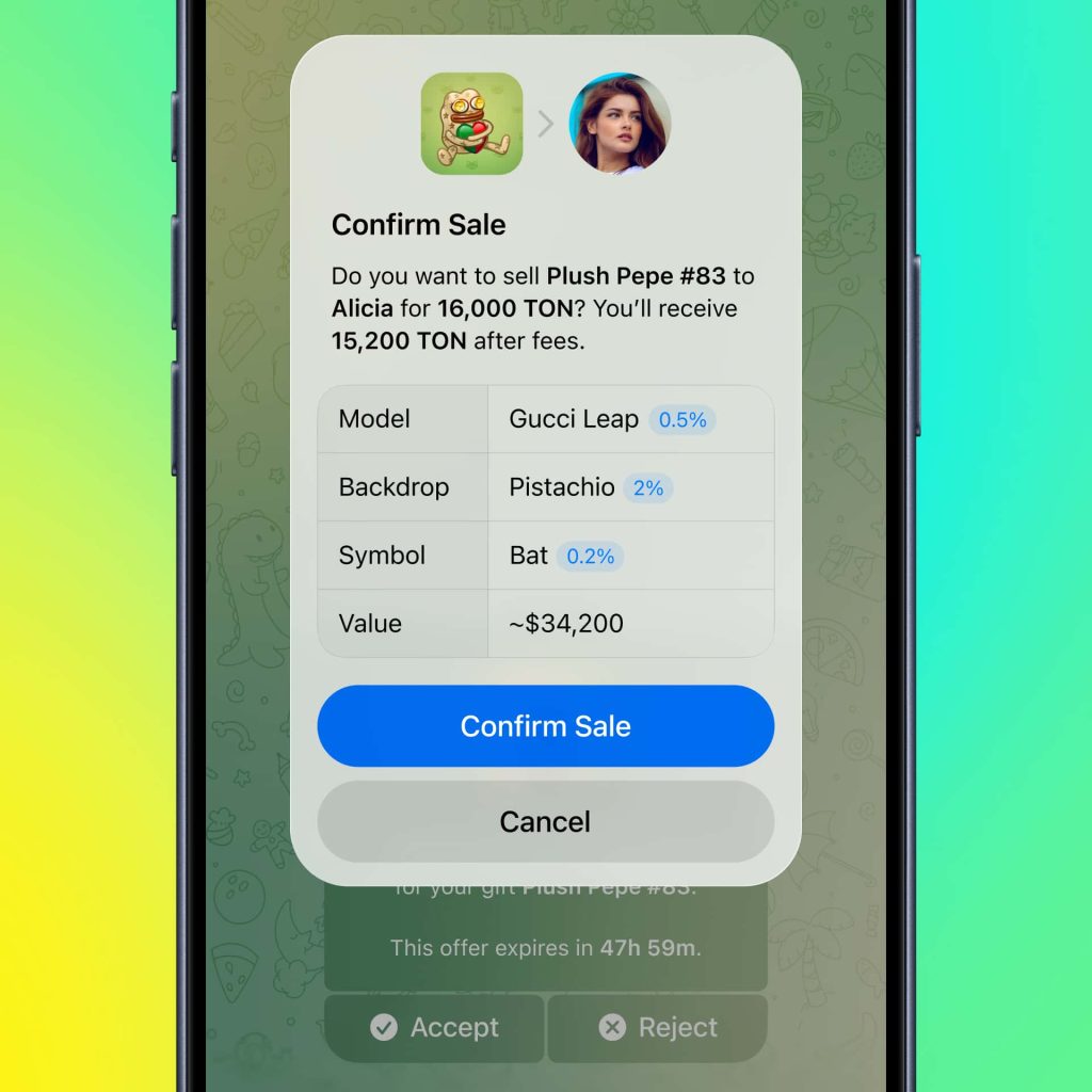Telegramissa voi jatkossa myös tehdä turvallisia lahjaehdotuksia. Käytännössä kyse on mahdollisuudesta sopia virtuaalisisten lahjojen kaupoista etukäteen tarjoamalla tiettyä hintaa sekä takarajaa tarjouksen hyväksymiselle. Mikäli kauppa hyväksytään, vie Telegram sen loppuun automaattisesti.