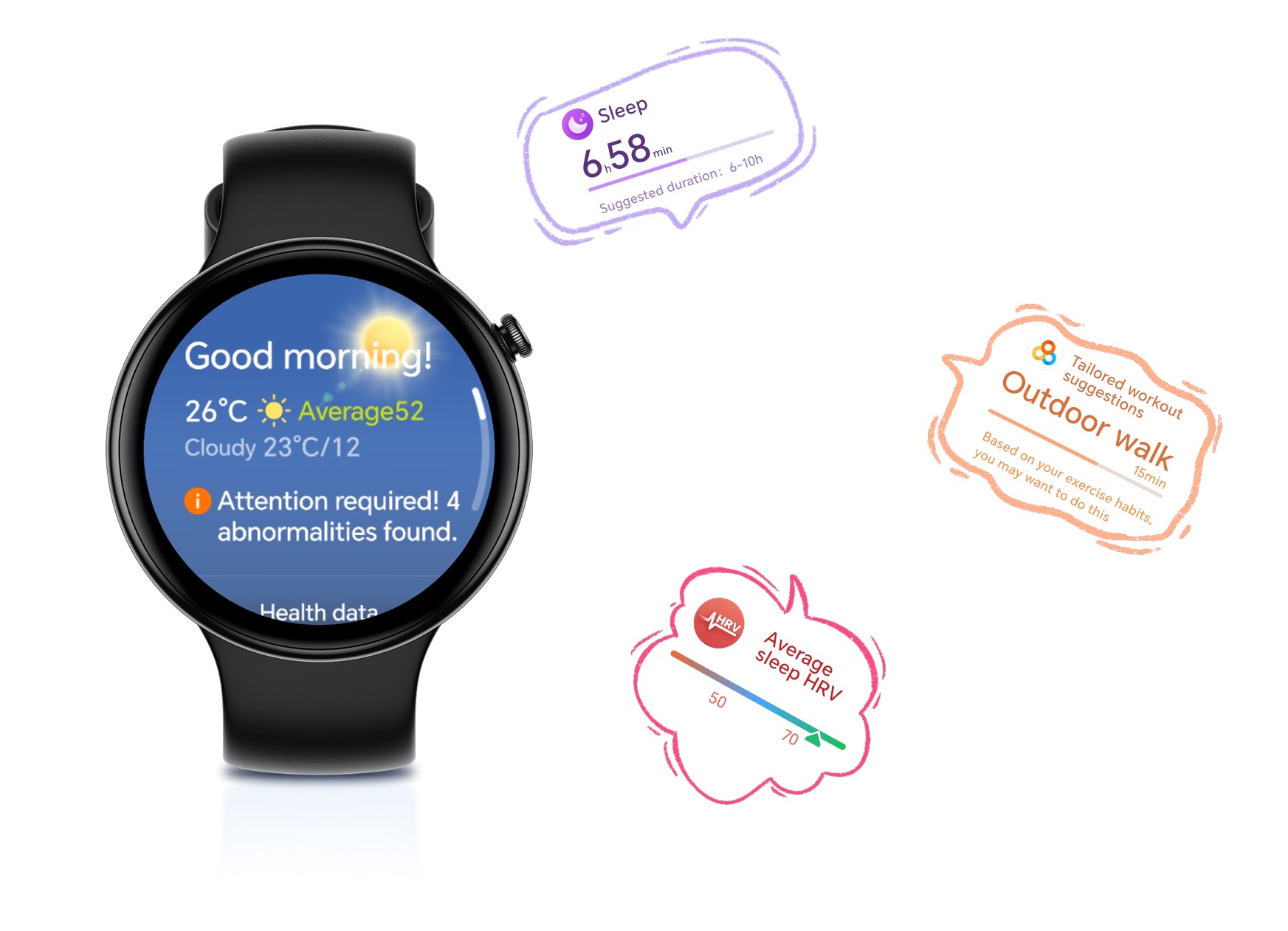 Suosituksissaan kello osaa huomioida mittauksiin perustuvan fyysisen tilan arvion ohella säätilan tarjoten sopivia aktiviteetteja päivälle.