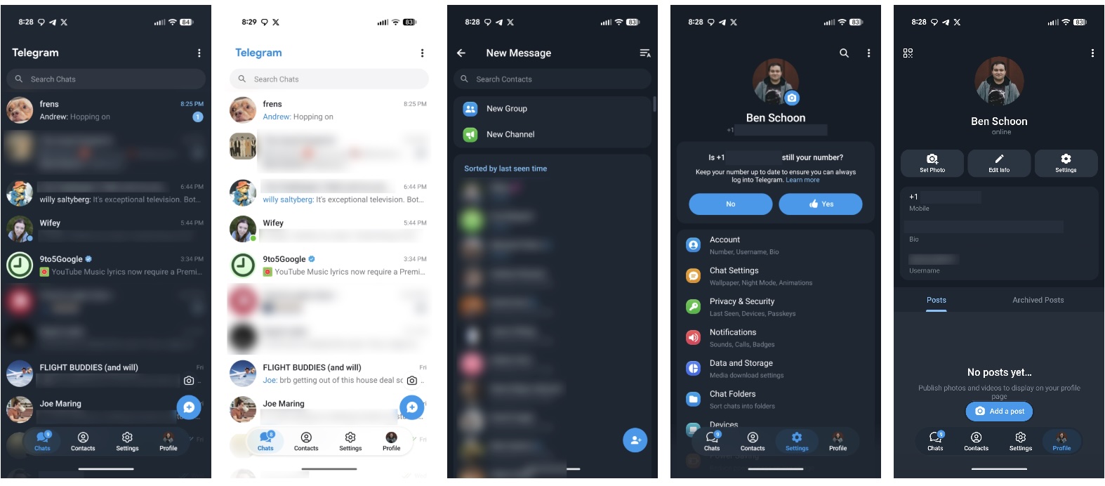 Telegramin uudistunut Androi-sovellus. Kuvat: 9to5Google.