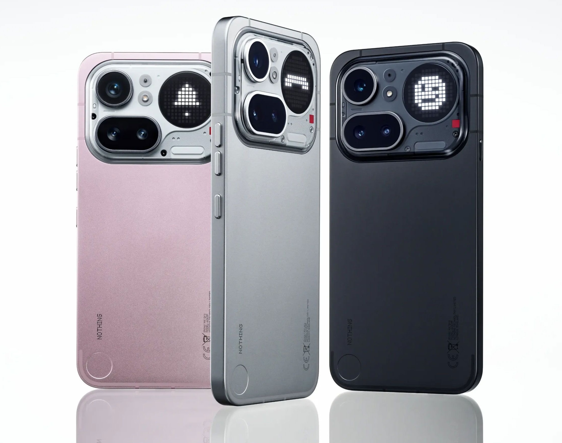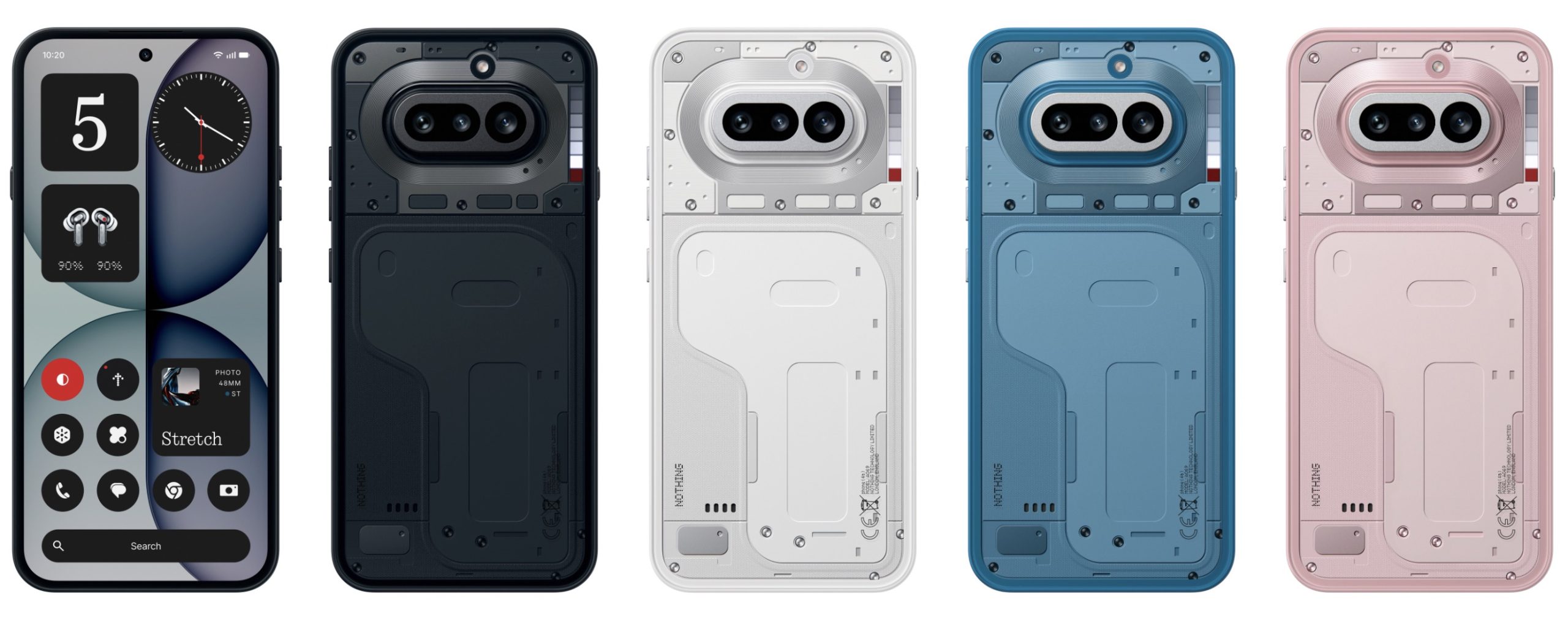 Värivaihtoehtoja Nothing Phone (4a):sta ovat musta, valkoinen, sininen sekä pinkki ja Nothing Phone (4a) Prosta musta, hopea ja pinkki.
