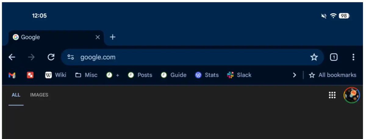 Suurinäyttöisillä Android-laitteilla voi nyt käyttää kirjanmerkkipalkkia Chrome-selaimella. Pieni uudistus helpottaa kirjanmerkkien käyttöä.