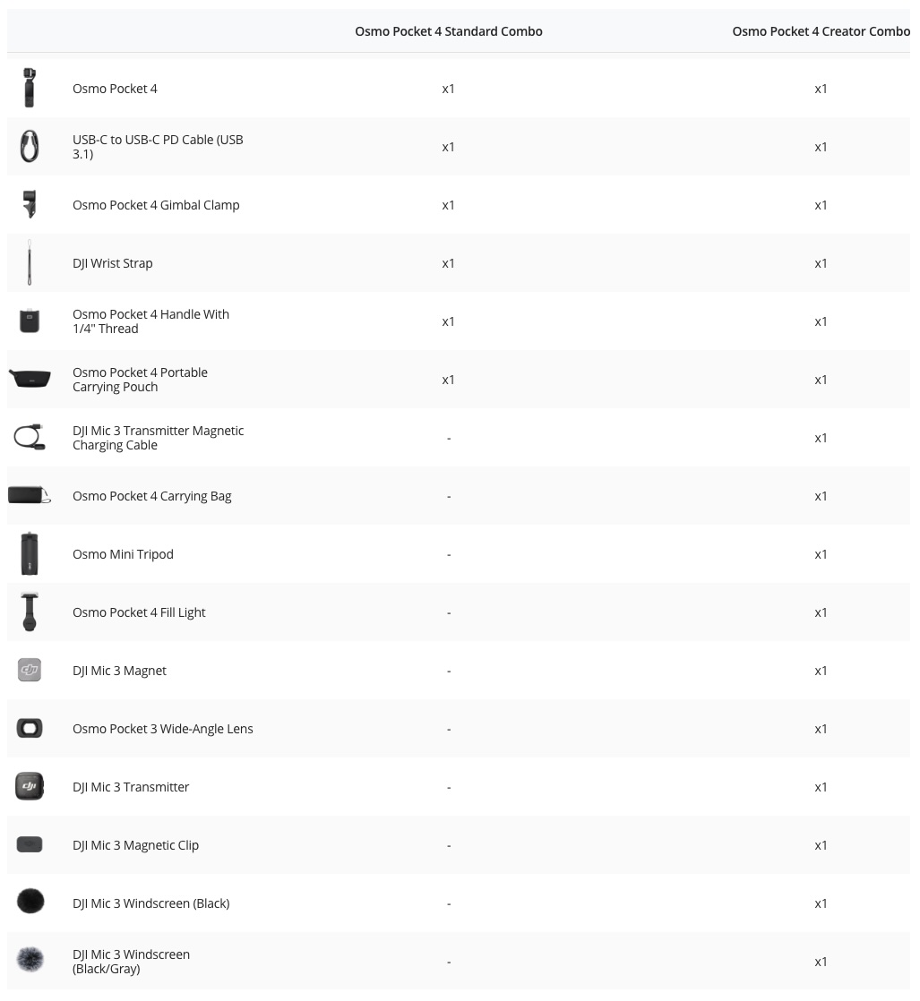 Kamera on tarjolla kahtena varustepakettina. Osmo Pocket 4 Standard Combon hinta on 519 euroa ja Osmo Pocket 4 Creator Combon 639 euroa.