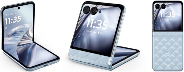 | Teksti/multimediaviestit Aina päällä näyttö -tila Stereokaiuttimet Kannessa 3,6 tuuman, 1066×1056 pikselin ja 90 hertsin AMOLED-näyttö, 3D-tikattu kuviointi ja 35 Swarovski-kristallia, mukaan lukien 26-fasettinen kristalli saranassa, myynnissä yhdessä Moto Buds Loop -kuulokkeiden kanssa | |||